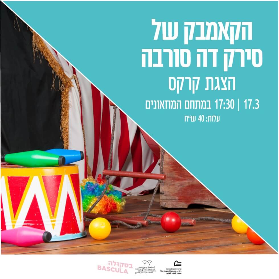 יום חמישי ב-17:30 מופע הקרקס המדהים מבית היוצר של להקת בסקולה, שבו מקימים שלושה שחקנים את הקרקס שלהם כנגד כל הסיכויים. הצגת קרקס תאטרון לכל המשפחה עם כל המרכיבים הקלסיים והאהובים של הקרקס: הומור מטורף, ליצנות, אקרובטיקה, מוסיקה ואנושיות טהורה.