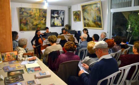 - בתובלים במוזיקה קלאסית, ניגונים ושירים ישראלים, וציורי הגלריה.